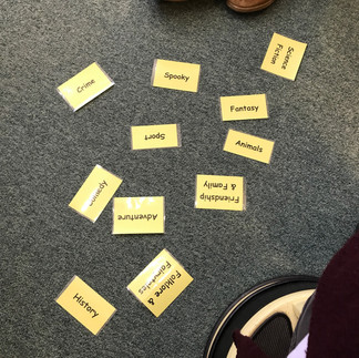 We sorted books into categories today. We had to read the blurb as well as look at the cover and check the title, then choose the most appropriate category. Some were obvious but others we needed to talk about.